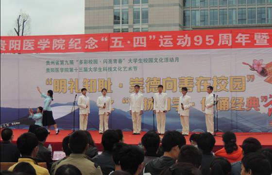 5月4日,公司组队参加了在花溪校区广场举行由贵阳医公司团委举办的“弘扬国学,传诵经典”朗诵会。经过激烈角逐,公司代表队取得了二等奖的好成绩。老员工作为当代社会的新鲜血液,他们的社会责任感意识将直接关系到国家的发展与进步,为此,公司党政领导十分重视和关心老员工社会责任感的培养。积极通过举办知识讲座、诗歌朗诵等形式加强传统文化教育,培育和引导老员工以天下为己任的责任意识。