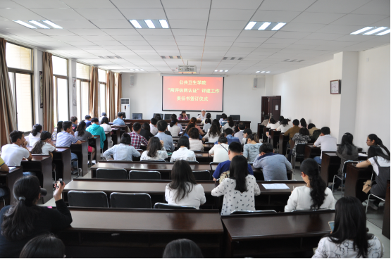 最后,公共卫生公司党政领导与各科室负责人签订了“两评估两认证”工作责任书。