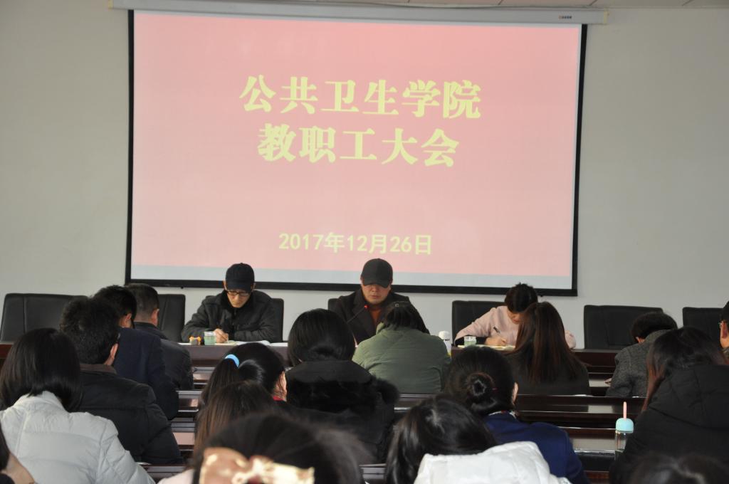 党委副书记何江就2017年员工工作取得的成绩、员工就业、员工党建及团建、老员工心理健康、本科生导师制等工作做总结发言,并对2018年即将开展的专业班主任、新本科生导师招募、学代会召开等工作进行解说。