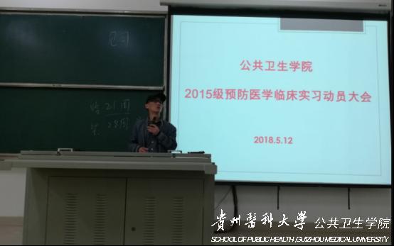 5月12日上午,威廉williamhill体育在北校区4101教室召开了“2015级预防医学专业临床实习动员大会”,会议由威廉williamhill体育员工管理科科长刘亮主持,公共卫生公司党委副书记何江参会,2015级预防医学专业111名同学参加。