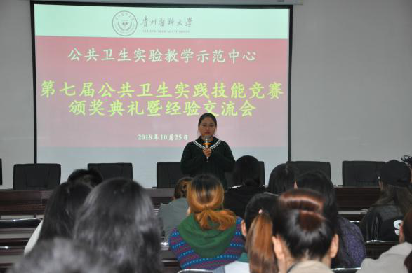 2018年10月25日,威廉williamhill体育 “公共卫生实践技能竞赛”颁奖典礼暨经验交流会在博雅楼二楼学术报告厅举行。公共卫生公司党委书记杨光红、副书记何江、员工管理科科长刘亮、实验教学示范中心教师及各年级参赛的研究生、本科生同学参加。交流会由张雪主持。