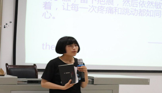 随后,来自各专业年级的18名同学依次登台与大家畅谈各自带来的书籍和读后的感悟,包括了《钢铁是怎样炼成的》、《活着》、《平凡的世界》、《飘》等优秀书籍。每位分享者都激情洋溢地讲述自己与书籍的邂逅以及在阅读后的感悟,在座的师生们无不全神贯注地聆听。在分享会中,还穿插了诗词知识竞猜互动游戏,使整场活动的气氛更加愉悦和轻松。