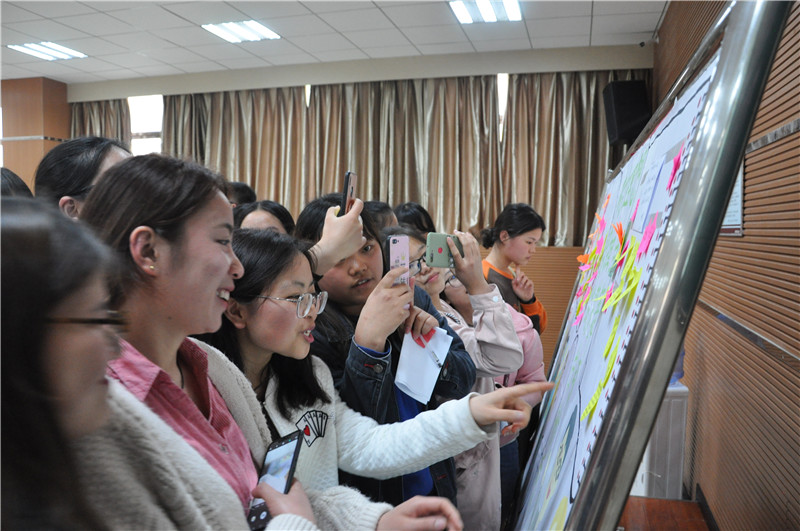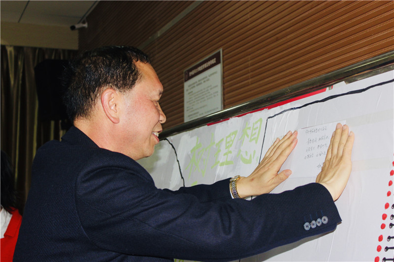 领导、老师们同时写下对同学们的寄语,同学们也积极地在一张张小纸片上写下了自己的想法,师生间有关理想和青春的对话在主题展板融为一体。