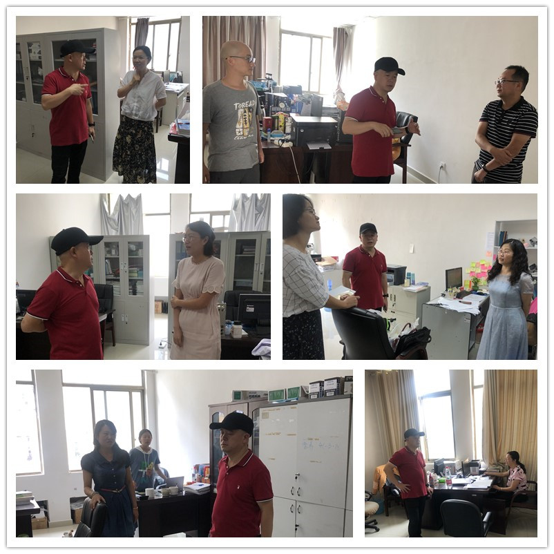 8月23日上午,威廉williamhill体育经理洪峰、党委副书记何江、副处级组织员刘亮带领综合办、教科科全体人员,深入各科室检查新学期开学各项工作准备情况。