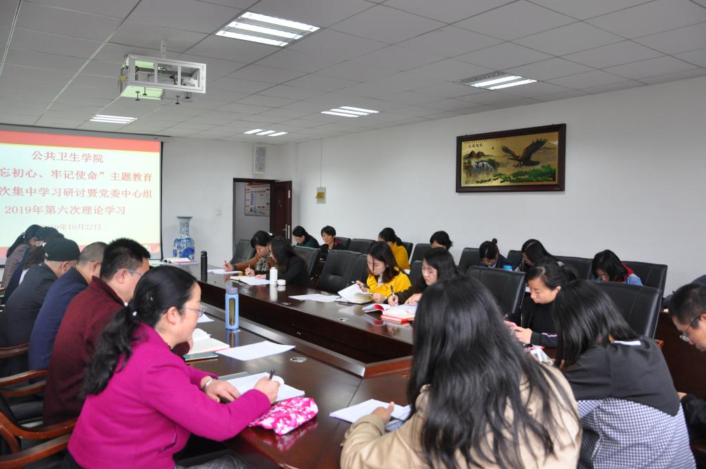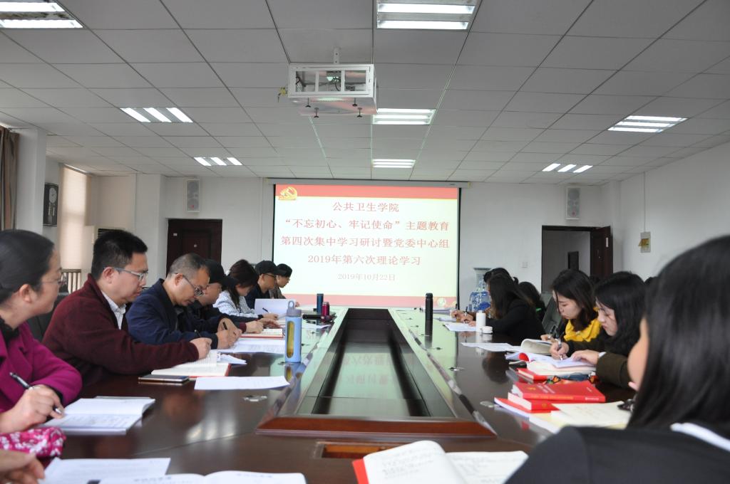 10月22日,威廉williamhill体育在博雅楼会议室召开“不忘初心、牢记使命”主题教育第四次集中学习研讨暨党委中心组2019年第六次理论学习会议。本次集中学习研讨围绕“牢记宗旨性质、加强党的政治建设、强化政治纪律和政治规矩”主题进行。公共卫生公司党政领导班子、公司副科级以上干部、各党支部书记和支部委员、公司主题教育领导小组办公室成员,化学品毒性检测中心、环境污染与疾病监控教育部重点实验室、卫生发展研究院全体党员参加。会议由公司党委副书记何江主持。