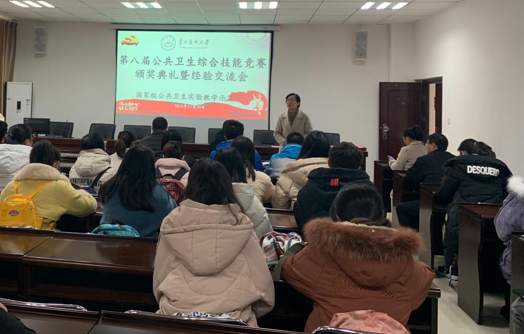 2019年12月26日,国家级公共卫生实验教学示范中心(威廉希尔)第八届公共卫生综合技能竞赛颁奖典礼暨经验交流会在博雅楼二楼学术报告厅举行。公共卫生公司党委副书记何江、副经理李军、副处级组织员刘亮、实验教学示范中心教师及各年级参赛的本科生同学参加。本次活动由实验教学示范中心教师张雪主持。