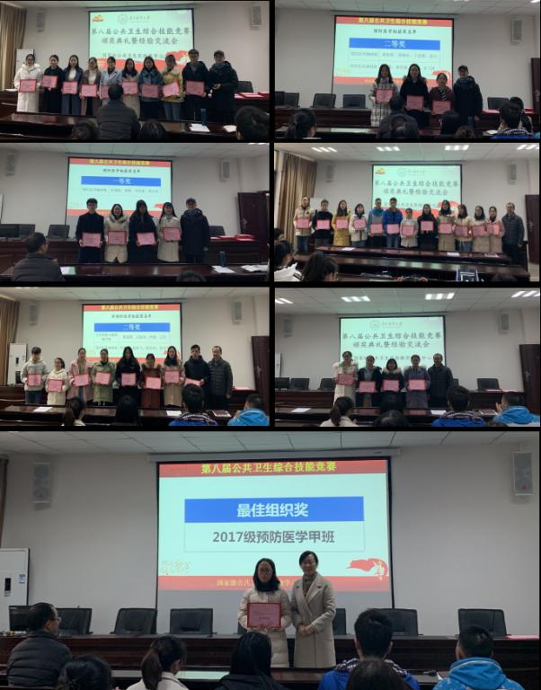 进入复赛的12支参赛队经过激烈角逐,预防医学专业组和非预防医学专业组分别产生了一等奖1名,二等奖2名,三等奖3名,最佳组织奖1名。张雪宣读了竞赛获奖名单,何江、刘亮和李军分别为获奖同学及班级颁发了荣誉证书。