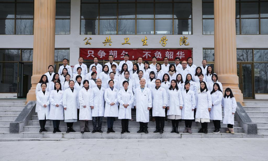会后,全体教职工以饱满的精神合照了“公卫全家福”。