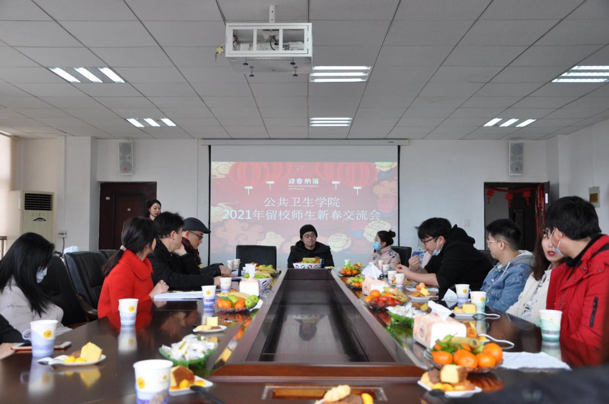 在新春佳节来临之际,威廉williamhill体育于2月5日下午在博雅楼二楼会议室组织召开留校师生新春交流会。公共卫生公司党委书记杨光红、经理洪峰、副经理李军、党委副书记何江、综合办副主任陈峰峰及留校师生参加此次会议,会议由公司团委书记柴颖主持。