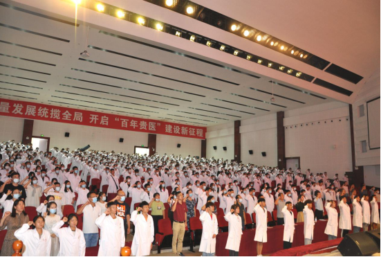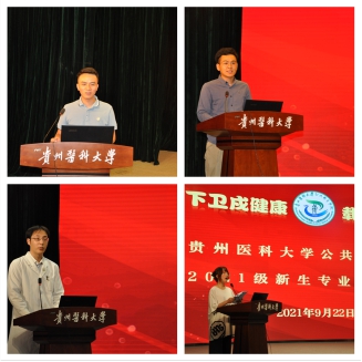 最后,在李军的带领下,2021级全体新生高握右拳,用慷慨洪亮的声音庄严宣誓:“公行天下旋歌不辍,卫成健康薪火相传!我将传承贵医精神,践行公卫使命,刻苦学习勤奋工作、精益求精、全面发展,以行动扛起责任,用担当诠释忠诚,为祖国的公共卫生事业奋斗终生!”。