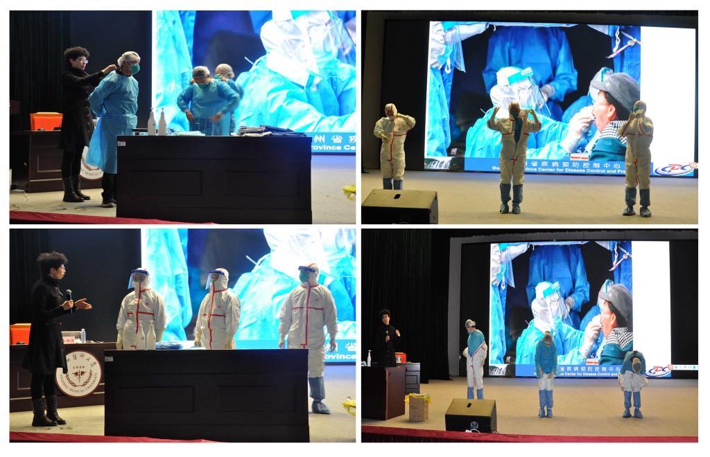 蒋维佳主任医师结合10余年病毒性相关疾病检测和疫情处置工作经历从生物安全引入新冠病毒核酸采样、核酸检测、结果分析等内容进行讲解。在实操过程中,蒋维佳根据采样实战经验详细分析讲解了每一环节的正确方法及注意事项,并利用教具、图像和实战经验向师生们展示了新冠病毒核酸采样和检测流程、注意事项以及目前新冠确诊的方法和仪器等。