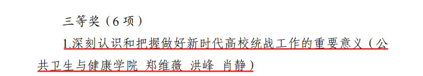 近日,公司公布了《关于表彰2022年度威廉希尔“喜迎二十大 同心跟党走 奋进新征程”主题实践活动的决定》,公司取得统战资政建言调研成果三等奖1项、统战基层工作案例三等奖1项的佳绩。其中,由郑维薇书记、洪峰经理、肖静主任申报的《深刻认识和把握做好新时代高校统战工作的重要意义》获统战资政建言调研成果三等奖;公司申报的《发挥专业优势卫戍生命健康》获统战基层工作案例三等奖。