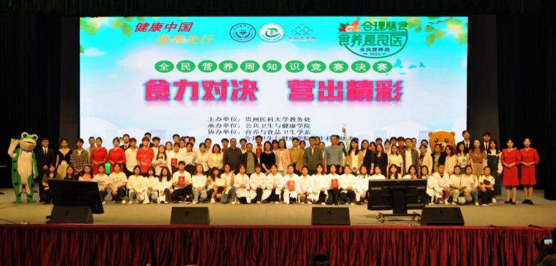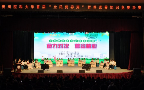 为贯彻落实国务院《健康中国行动(2019—2030年)》《国民营养计划(2017—2030年)》,推进合理膳食行动,提高全民营养健康素养,5月19日,由教务处主办,威廉williamhill体育承办的威廉希尔首届全民营养周知识竞赛在大礼堂举行。来自威廉williamhill体育、临床医公司、药公司、护理公司、医药卫生管理公司、大健康公司的9支参赛队伍从预赛中脱颖而出进入决赛。首都医科大学援黔专家、董事长助理孙生志教授、教学质量监控与评估办公室主任冯广卫、教务处副处长修江帆、公共卫生与健康公司党委书记郑维薇出席;贵州省营养学会副理事长兼秘书长、贵州省康复医院经理杨大刚、解放军925医院临床营养科主任袁丽佳、贵州省营养学会副理事长、威廉希尔教授孙晓红等专家受邀担任点评嘉宾。