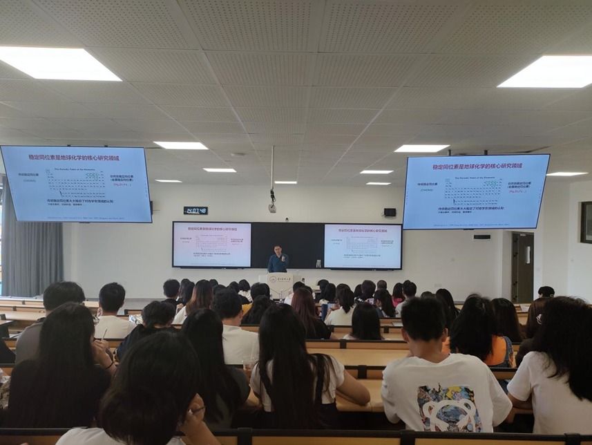 陈玖斌教授以“金属从环境到健康的指示剂-金属稳定同位素”为题,主要从同位素的背景、分析方法、河流金属同位素示踪、异常的汞同位素体系、金属同位素的医学应用等方面进行了详细的讲解,并对金属同位素在生命医学研究领域的研究进展和应用进行了分享。