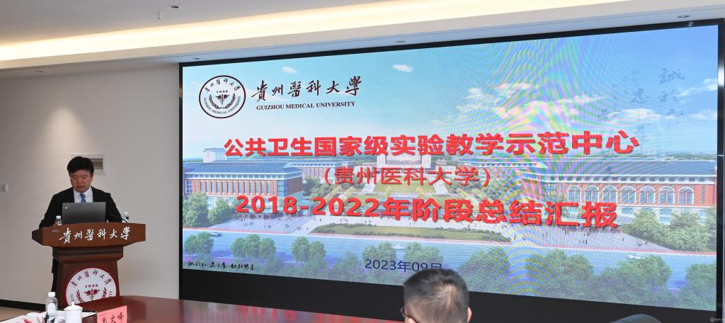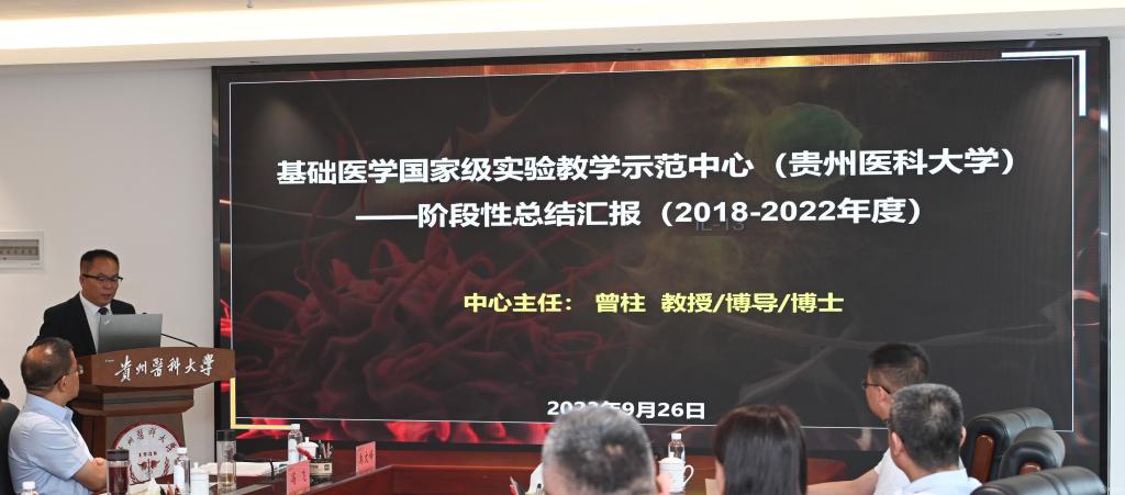 曾柱汇报基础医学国家级实验教学示范中心平台概况、成果成效、未来规划等情况。